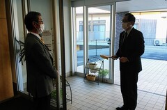 松山市高齢者福祉連絡会の渡部浩二会長を訪問し、高齢者施設での新型コロナウイルス感染症対策を注意喚起しました。