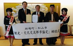 松山市と斑鳩町は「聖徳太子」や「正岡子規」と深いゆかりがあり、引き続き連携や交流を深め、お互いの都市の魅力を発信していくため、観光・文化交流都市協定を再締結しました。