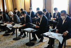務台俊介環境省副大臣との環境政策にかかる全国行脚(愛媛県)意見交換会に出席し、引き続き、松山市の脱炭素に向けた施策への幅広い支援を要望しました。