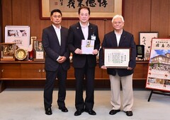 6月24日 Jリーグチェアマンの野々村芳和氏と愛媛FC代表取締役の村上忠氏が市長を表敬訪問(市役所)