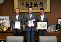 令和4年10月30日にアイテムえひめ FAZプラザで開催される「第3回BOTCHAN RUNBIKE CUP」に出場する3名の皆さんの表敬を受けました。