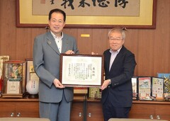株式会社ハウスメイトショップから、松山市の地方創生を推進するため、企業版ふるさと納税を活用した寄附いただき、松山市から感謝状と松山市地方創生パートナー認定証を贈呈しました。