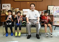 9月21日 「第3回BOTCHAN RUNBIKE CUP」に出場する皆さんが市長を表敬訪問(市役所)