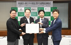 地域経済を活性化し、市内企業の収益力を向上させるため、一般社団法人 愛媛イノベーションベース、一般社団法人 たてヨコ愛媛、株式会社 Newspicksと松山市の4者で「収益拡大・新ビジネス創造に関する連携協定」を締結しました。