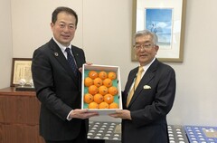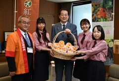 令和4年11月17日から全国一斉販売を開始する まつやま農林水産物ブランド「紅まどんな」のPRのため、えひめ中央農業協同組合の皆さんの表敬を受けました。