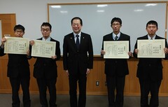 松山市中央児童センターの「QRコードによるおもちゃ貸出システム」を作成した松山工業高等学校の皆さんに社会福祉法人松山市社会福祉事業団の理事長として感謝状を贈呈しました。