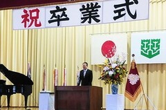 松山市内の中学校で行われた卒業式に出席し、お祝いの挨拶をしました。