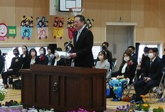 松山市内の小学校で行われた卒業式に出席し、お祝いの挨拶をしました。