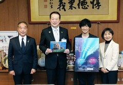 松山市をはじめ愛媛県内で映画『インビジブルハーフ The Invisible Half(仮)』の撮影を開始するのを前に、松山市出身で映画監督の西山将貴さんの表敬を受けました。