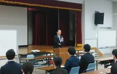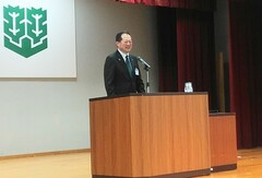 令和5年度市長講話で、新規採用職員全員に心構えや姿勢などを講話しました。