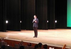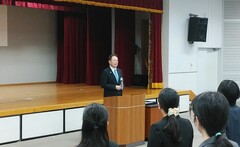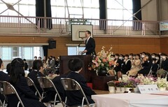 松山市内の中学校で行われた入学式に出席し、お祝いの挨拶をしました。