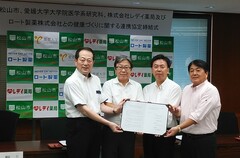7月4日 「松山市、愛媛大学大学院医学系研究科、株式会社レデイ薬局及びロート製薬株式会社との健康づくりに関する連携協定」締結式(市役所)