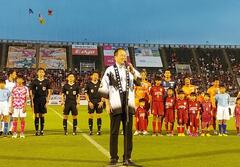 愛媛FCホームゲーム マッチシティ「松山市の日」 愛媛FC VS 鹿児島ユナイテッドFCの開会セレモニーに出席しました。