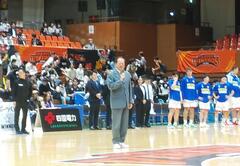 プロバスケットボールBリーグ2023-2024シーズン開幕戦で、愛媛オレンジバイキングスVSライジングゼファー福岡の試合が行われ、試合前セレモニーに出席しました。