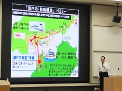 愛媛県新幹線導入促進期成同盟会の副会長として、西日本旅客鉄道株式会社へ、四国新幹線を早期に導入するよう要望しました。