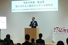 松山市親と子のよい歯のコンクールで、口腔の健康を保持し、増進に努めている親と、むし歯がなく規則正しい生活習慣を送っているお子さんを表彰しました。