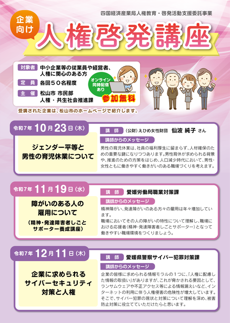 令和7年度企業向け人権啓発講座(四国経済産業局人権教育・啓発活動支援委託事業)の開催について