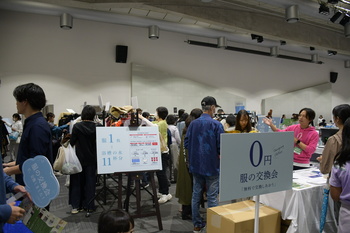 デコ活ブースでは、着なくなった服を会場にある服と交換することができる「0円服の交換会」や小型家電から回収したリサイクル金属でストラップ作り、廃プラスチックでアップサイクルワークショップ、環境に関する取組(省エネエアコン等)紹介、エコカップ「森のタンブラー」と「森のボトル」等の展示を行いました。