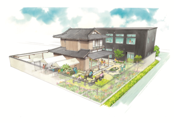 ・芝生広場やイベントスペースほか庵や中庭で、テントや机を置いて催しができるようにします。
