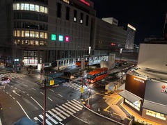 西側ロータリーの一般車乗降場の屋根の整備や市内電車の電停の移設工事が進んでいます。東側ロータリーのバス乗り場の屋根の整備が完了しました。