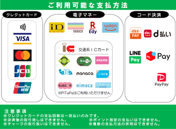 - 現金とクレジットカードなど複数の支払い方法の併用はできません。