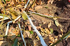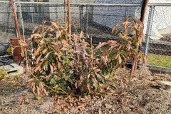 【防寒対策比較】コモの壁で守られた緑葉と 無被覆の被害部分