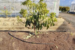 農業指導センターは、みかん・伊予柑からの転換作物の一つとして、平成21年から、アボカドの産地づくりに取り組み、アボカド苗を分譲しています。これまでには、アボカドの苗木が寒さや干ばつに弱く、植え付け後に多くの苗木が枯れるなど、多くの困難がありました。取り組み開始から16年以上経過した現在では、これまでの経験をもとに、苗作りや、栽培指導等の改良を重ね、産地づくりを進めています。