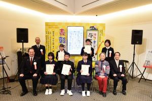 令和3年11月28日(日曜日)に、坂の上の雲ミュージアム2階ホールで、松山市内の小学生、中学生が自作の俳句を自筆の書で表現した「俳句と書のコンクール 筆で書く五七五」の表彰式を行いました。